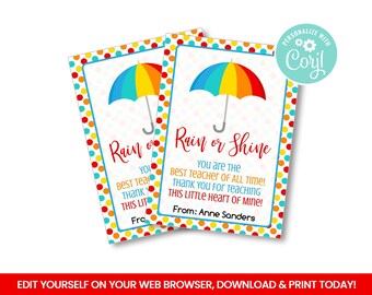 Umbrella Gift Tag, Teacher Staff Employee Appreciation Week, Rain or Shine You're the Greatest, School Pto Pta Thank You, Editable Template