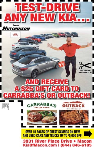 $25 Gift Card for Test Driving 2011 Kia Sorento Get a $25 Prepaid gift card for doing a test drive with the 2011 KIa Sorento. Simply fill out your information and take your e-certificate to your local Kia dealership by March 15. Now $25 may not be a lot of money, but it's free money after all. Take advantage of this by signing up today. Free $25 for Test Driving a Kia Optima - Doctor Of Credit Approximately 6 to 8 weeks after submitting your completed certificate, you'll receive a $25 Kia Visa Prepaid Card by return mail The Fine Print Valid between 7/29/16 and 10/31/16 Must be 18 years or older with a valid drivers license One $25 gift card per household Salesperson validation required Limited to the first 10,000 certificates received FREE $25 Visa Card with Kia Test Drive - Hustler Money Blog Your $25 gift card will be mailed to you Bottom Line: This is a limited offer for the first 10,000 signups only, so I recommend to sign up for this Kia $25 Test Drive promotion right away. You may want to go ahead and do the test drive yourself ASAP. Schedule a Test Drive Receive a Gift Card | Kia of Everett The commitment to our community is what drives us to make great efforts to give back. At Harnish Auto Family we want to help small business restaurant owners by giving back to the community that supports us. January "Drive and Dine", test drive a vehicle January 6th through the 31st and you will receive $25 gift card.